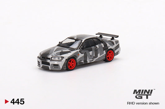 Mô hình xe Mini GT 1:64 Nissan Skyline GT-R (R34) V-Spec II MINI GT Digital Camouflage Grey 2022 Hong Kong Toycar Salon Edit - MGT00445